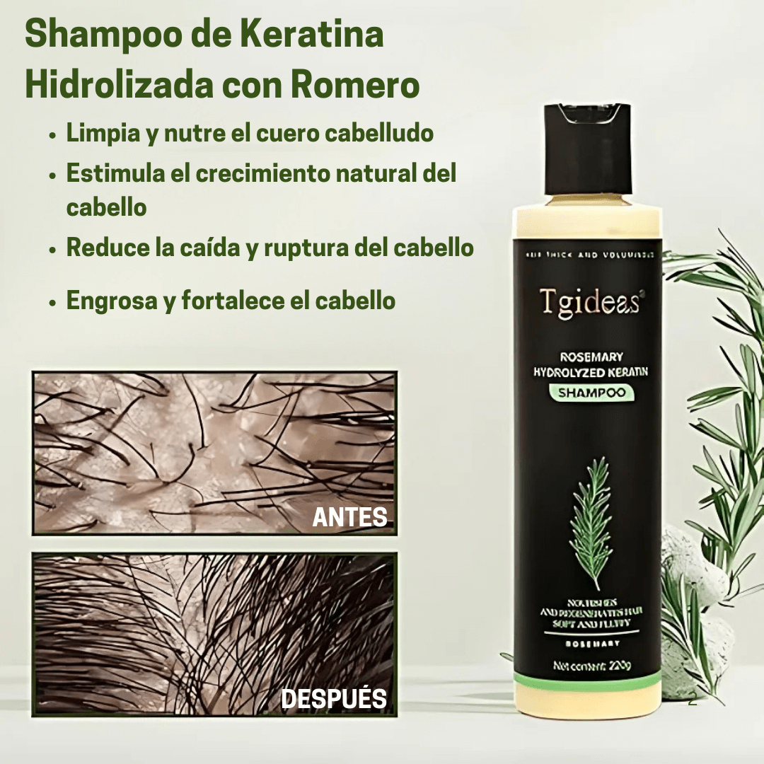 Beneficios que ofrece el champú TgIdeas con Keratina, Romero, Ortiga y Biotina: