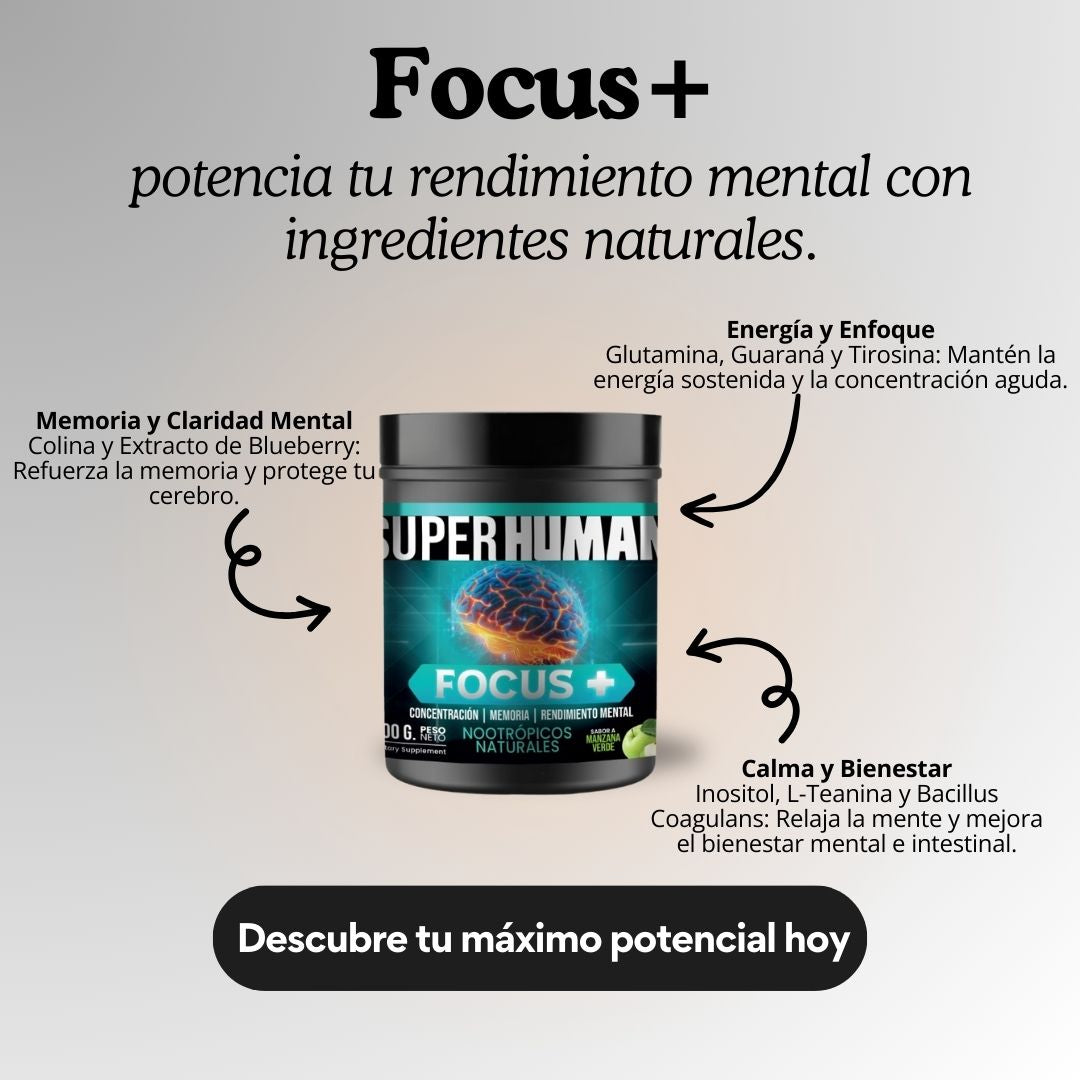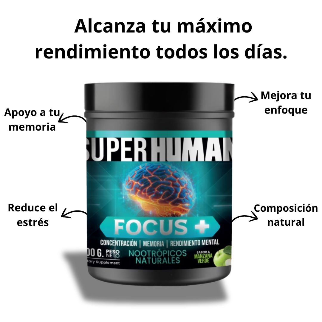 Focus+ Nootrópico Natural para un Máximo Rendimiento Mental Potenciador de Memoria y Productividad (300 gramos) SuperHuman™